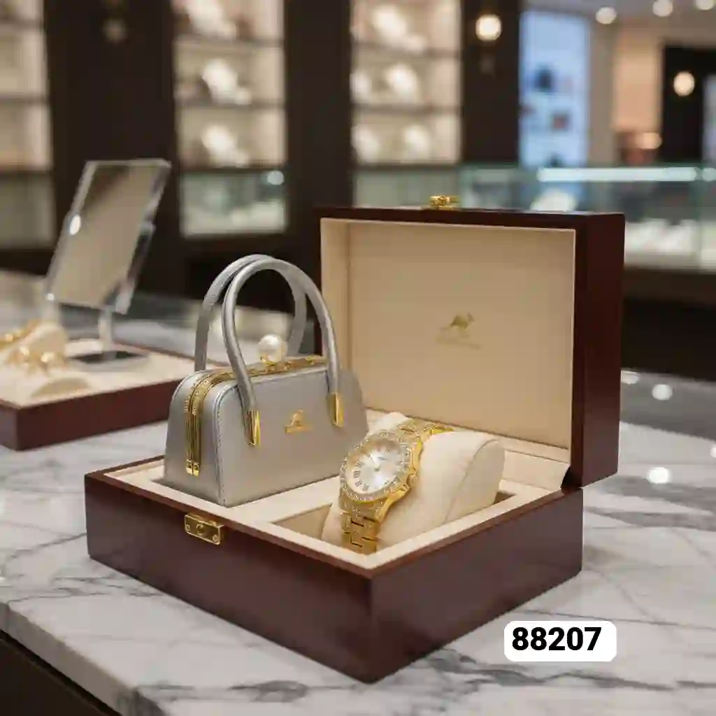 "طقم الفخامة شنطة يد مع ساعة ذهبية مرصعة بالكامل بالفصوص اللامعة