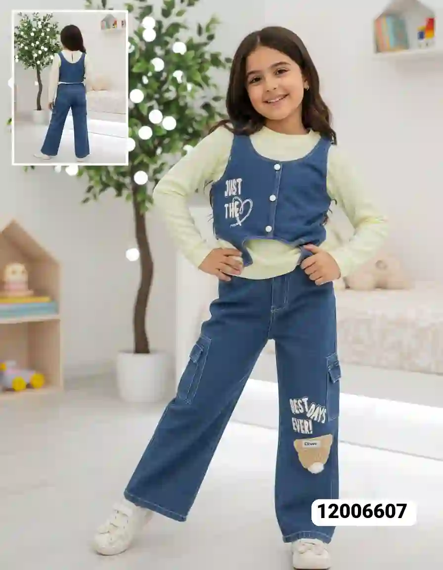 طقم بناتي جينز شيال 3 قطع