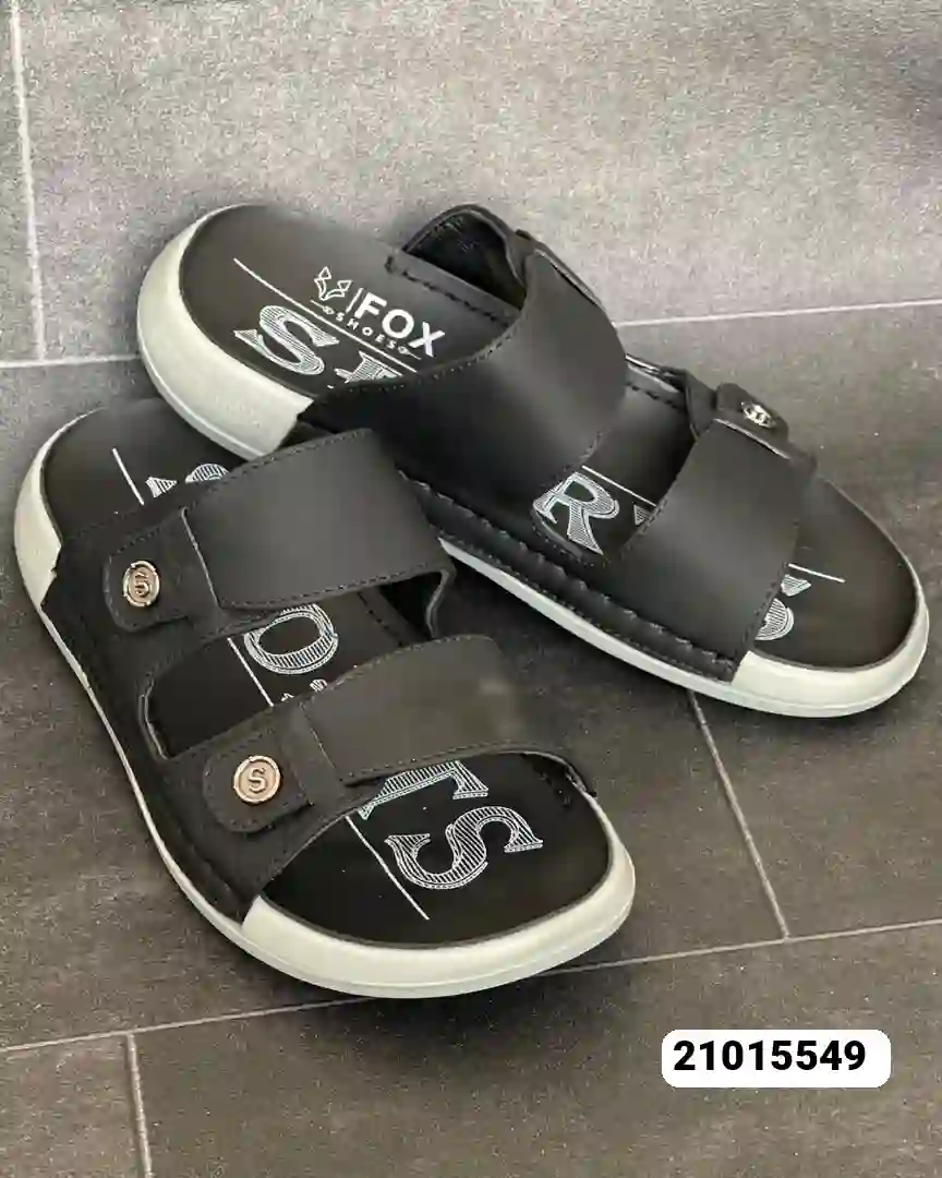 مصنوع من الجلد الصناعي (المحبب) الذي يعطي متانة وشكلاً فخماً، مع  "أحزمة متقاطعة" ) لضمان ثبات القدم وسهولة الحركة.