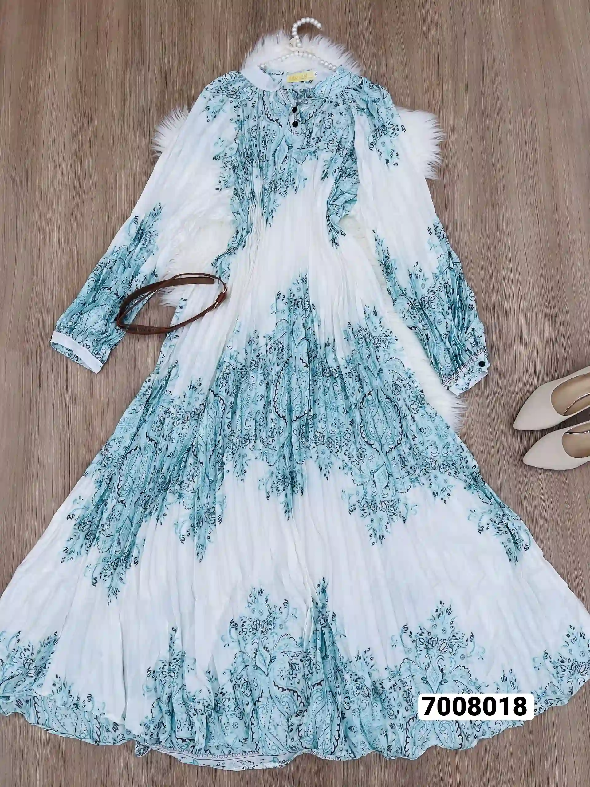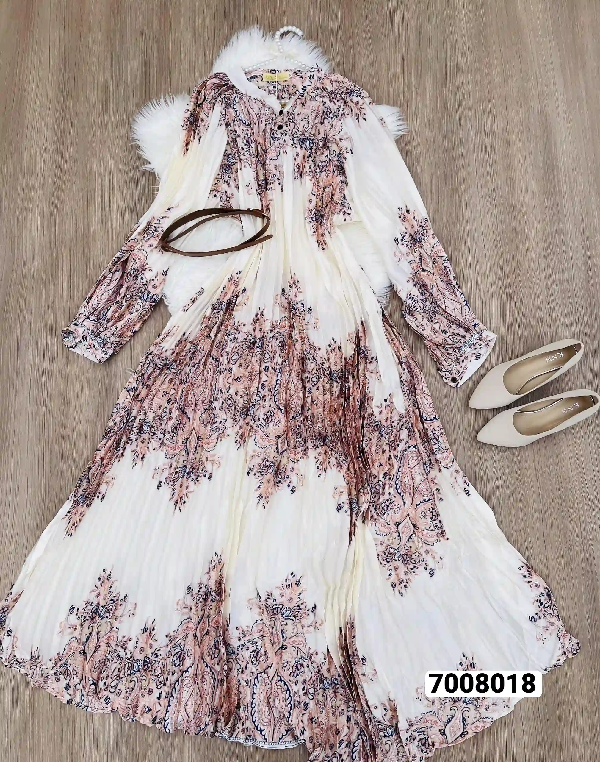 بتصميمه البوهيمي الأنيق ونقشة الورود الهادئة الممزوجة بتفاصيل شرقية على أرضية بيضاء ساحرة، ليمنحك مظهرًا راقيًا في كل مناسبة.