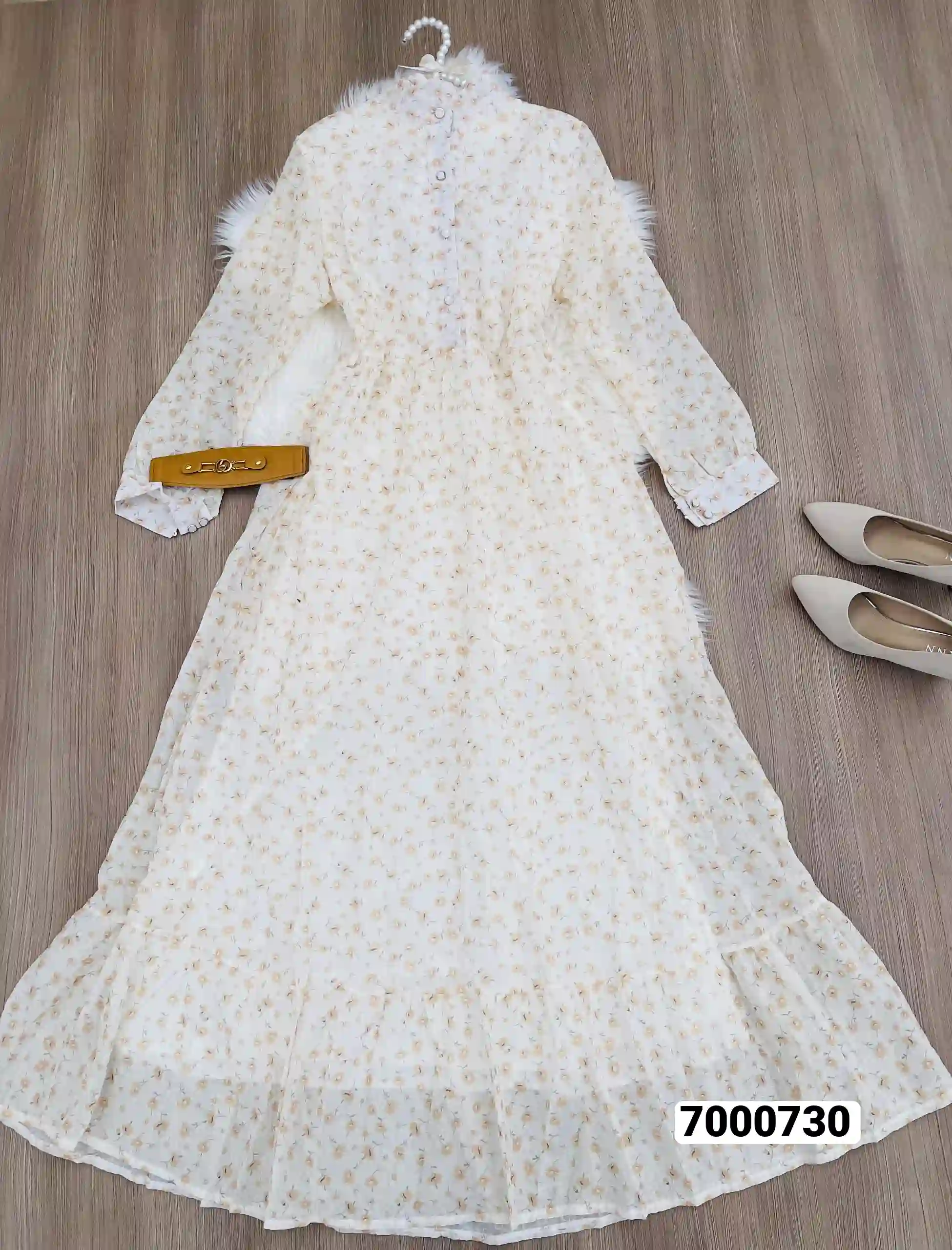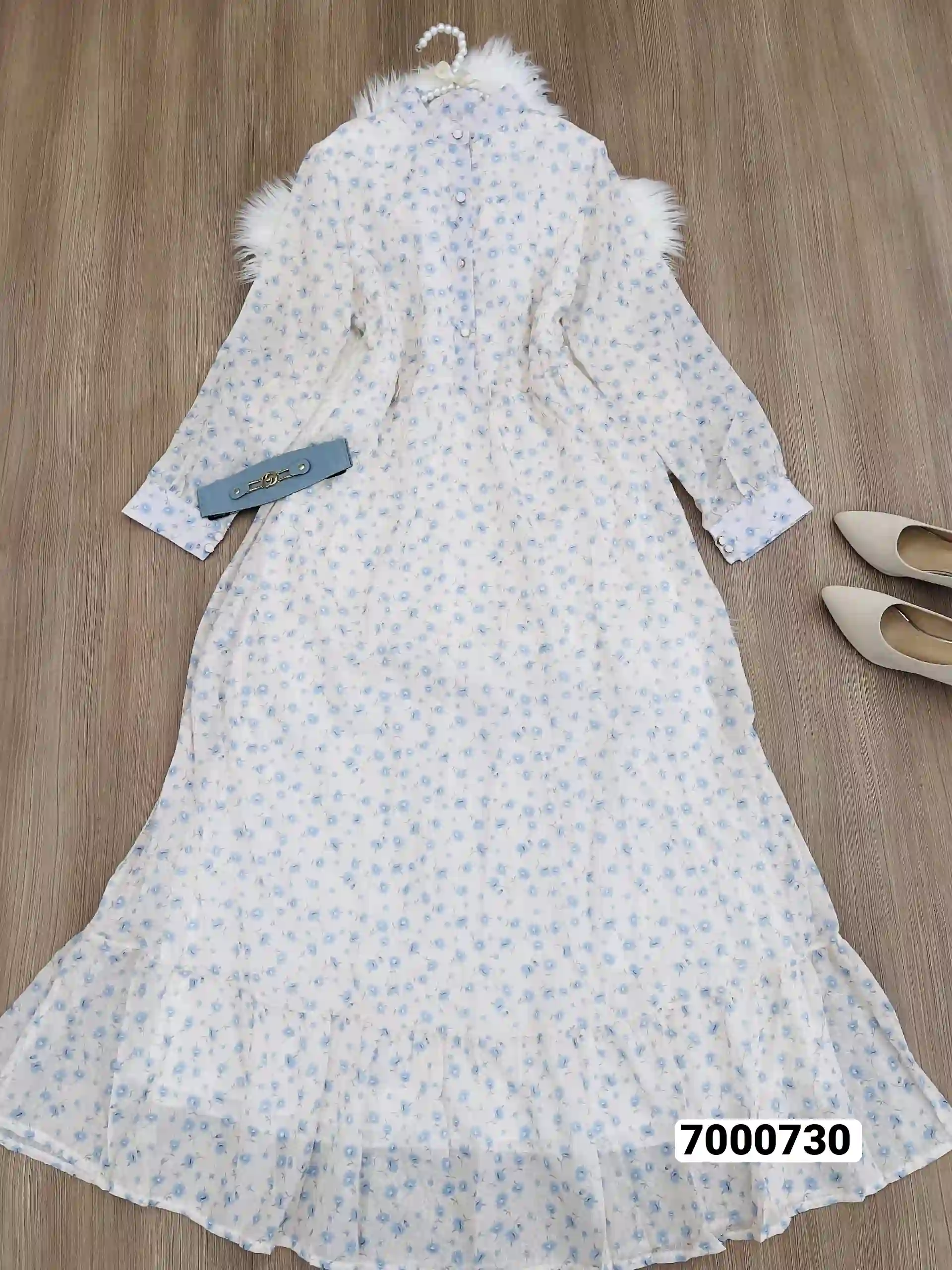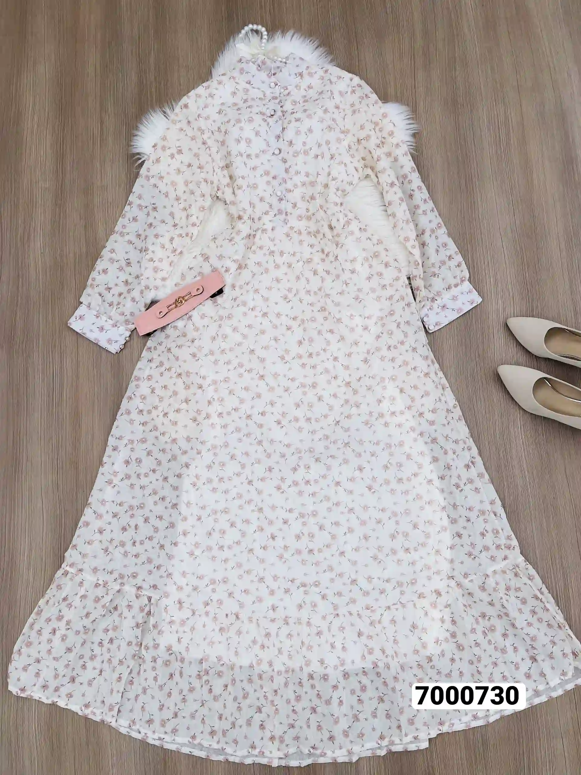 مثالي للمناسبات الصباحية، العزائم، أو حتى مشاويرك اليومية بإطلالة ناعمة ومحتشمة. متوفر بمقاسات متعددة – اسألي عن مقاسك الآن! نسقيه مع حقيبة يد صغيرة وكعب بيج لإطلالة كاملة مثل اللي في الصورة!