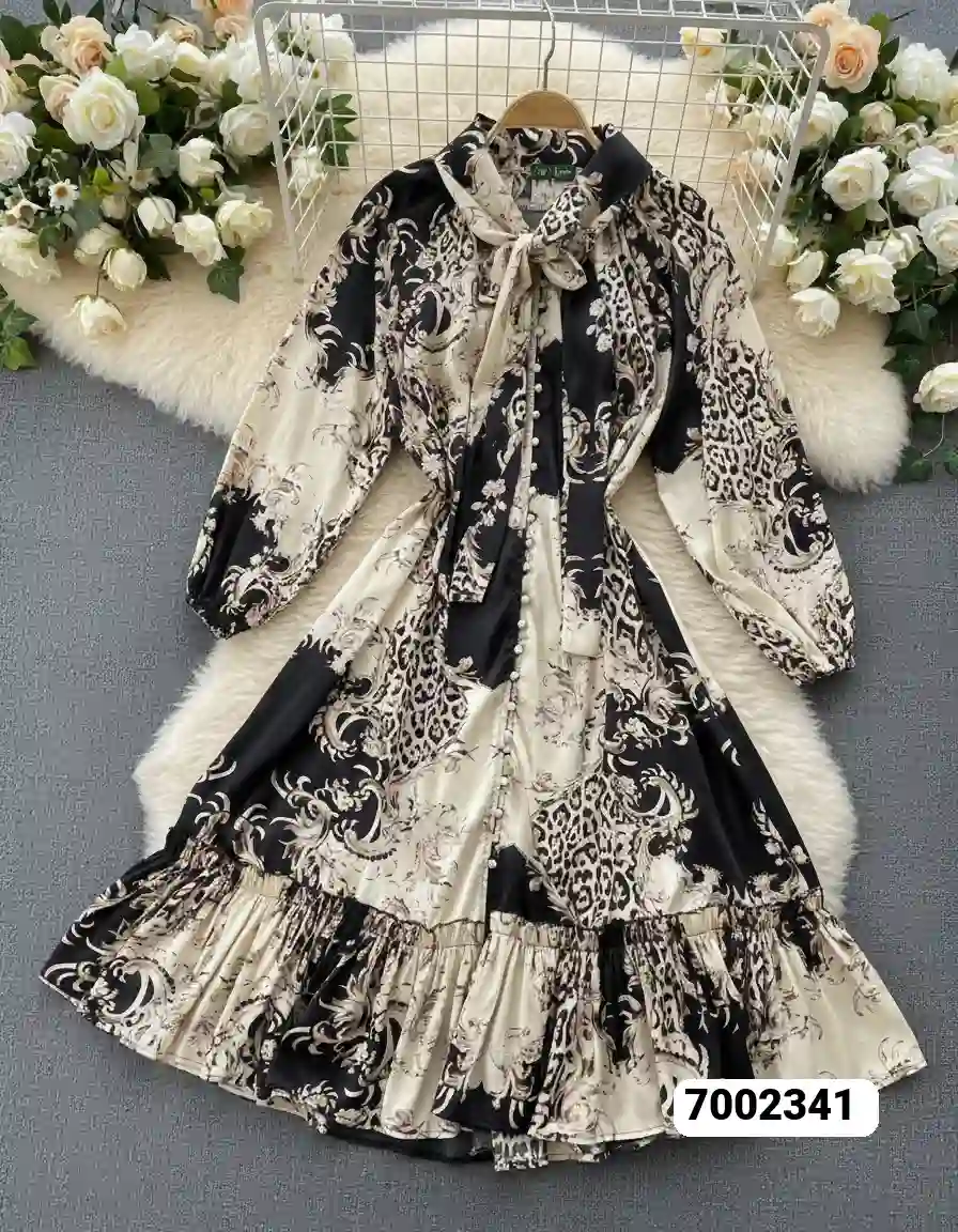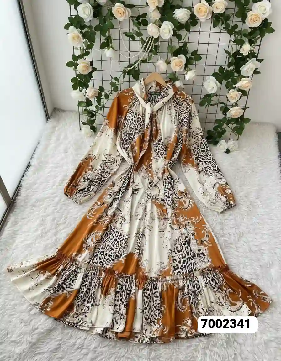 فستان نسائي ربطه عنق نمري زرارلول حيران قماش حرير