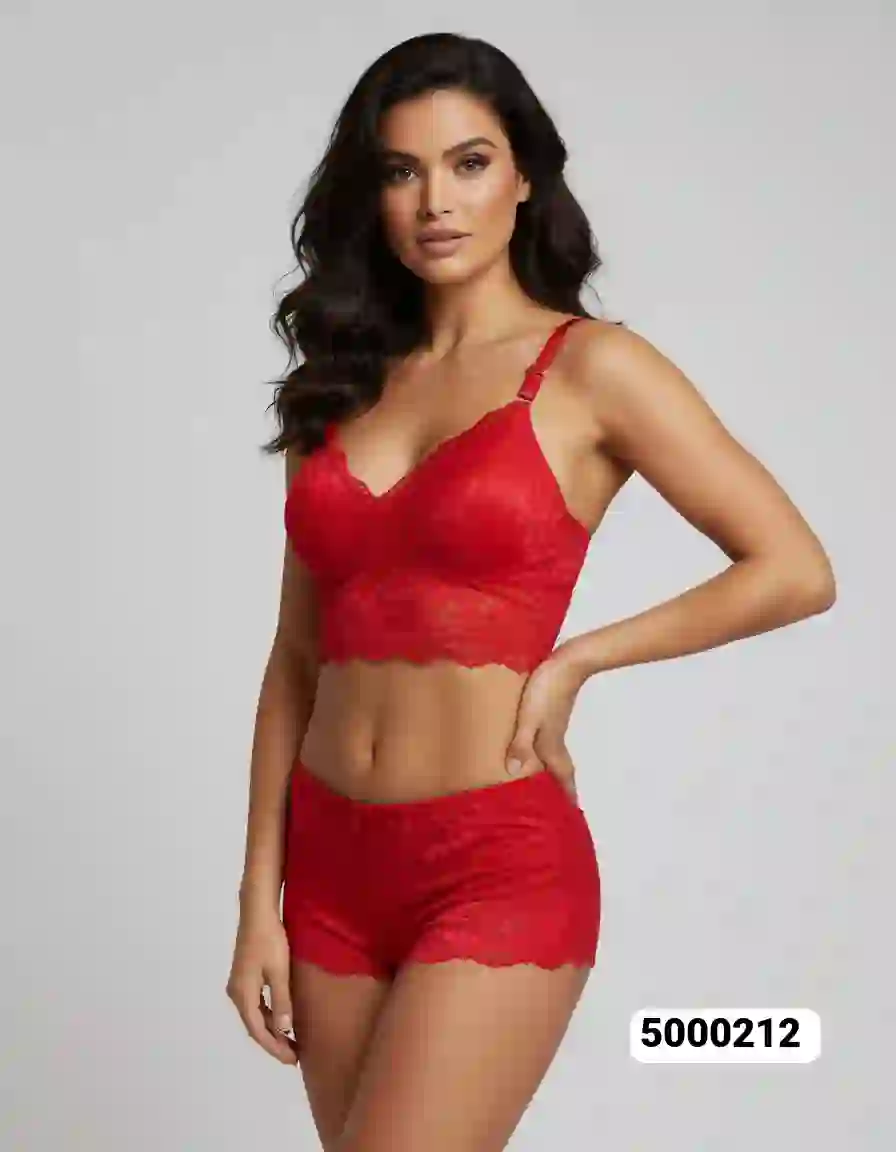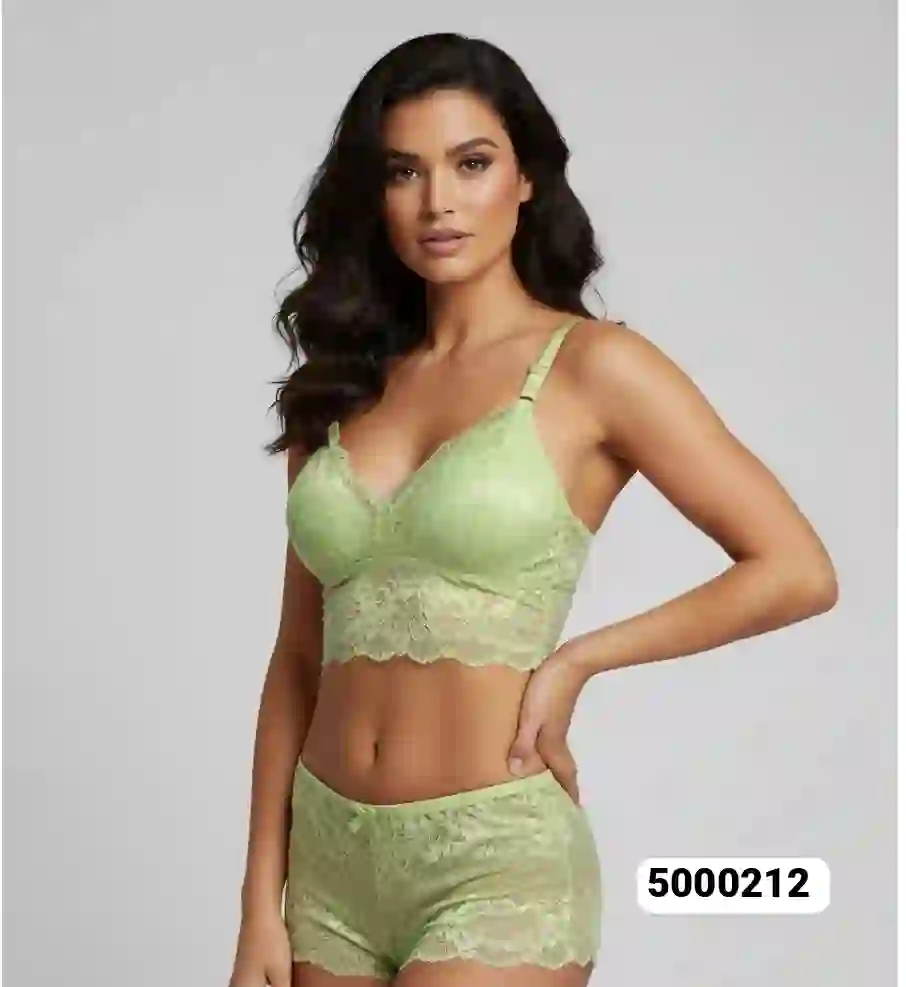 * **تفاصيل دقيقة:** يتميز الطقم بتفاصيل دقيقة مثل الدانتيل الرقيق على الأطراف، مما يضيف لمسة من الرقي والفخامة.