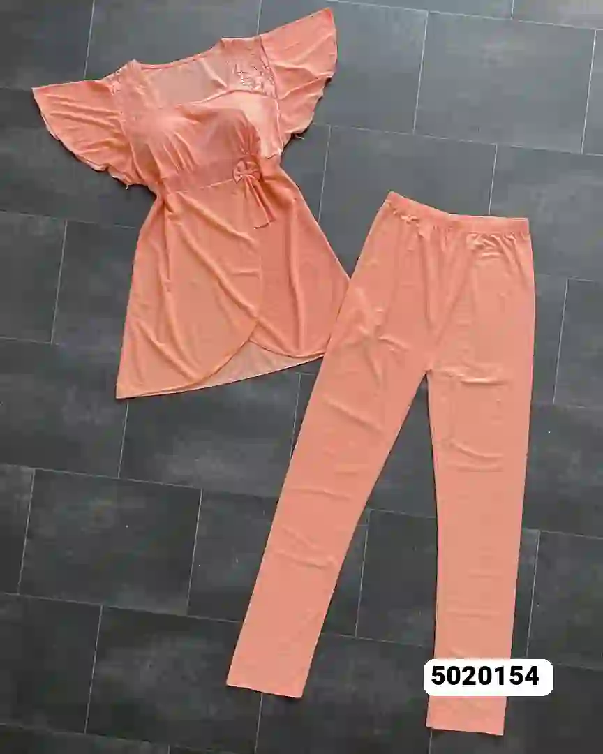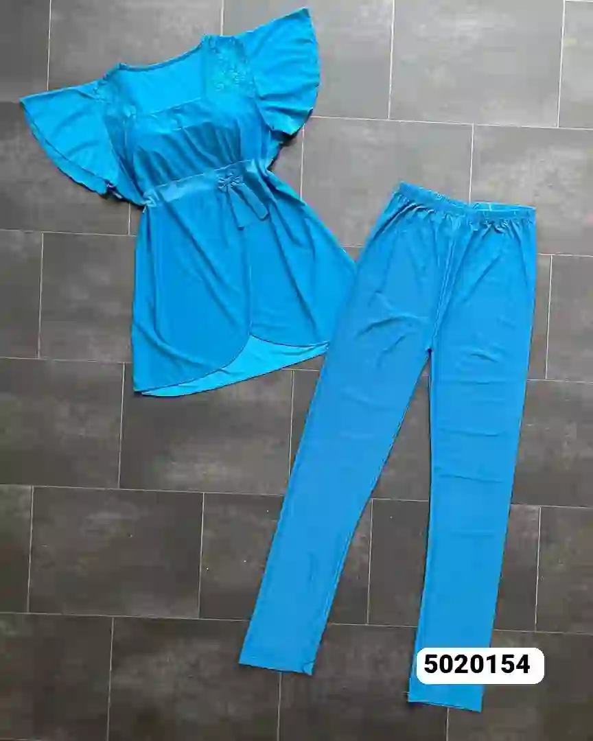 روب نوم نسائي أنيق وجذاب يجمع بين الراحة والأناقة في تصميم واحد. القماش ناعم وهادئ اللمعان ينساب على الجسم بخفة، ليمنحك إطلالة هادئة وثقة تامة أثناء الليل. التصميم مكوّن من قطعتين: قميص قصير بلمسة عصرية مع حزام رفيع عند الخصر وبنطال طويل مريح بحزام مطاطي يسهل التحرك والارتداء. اللون الأزرق الفاتح كما في الصورة يبرز تفاصيل القطعة بشكل رائع ويتماشى مع طابع النوم المريح.