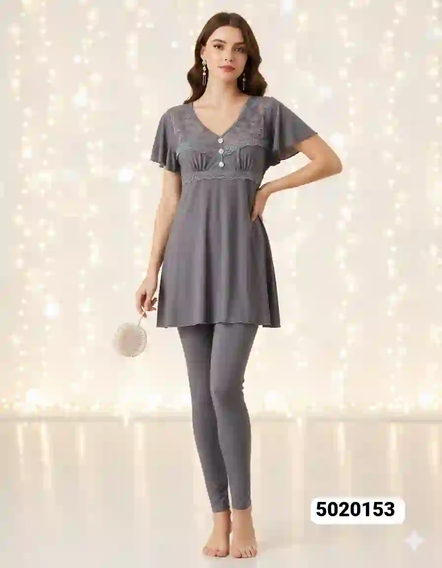 يعطي حركة وأنوثة دون مبالغة. خامة ناعمة ومرنة تشعرك بالراحة طوال الليل وتمنحك حرية الحركة، بينما يمنحك الطول المتدنّي مظهرًا أنثويًا متكاملًا.