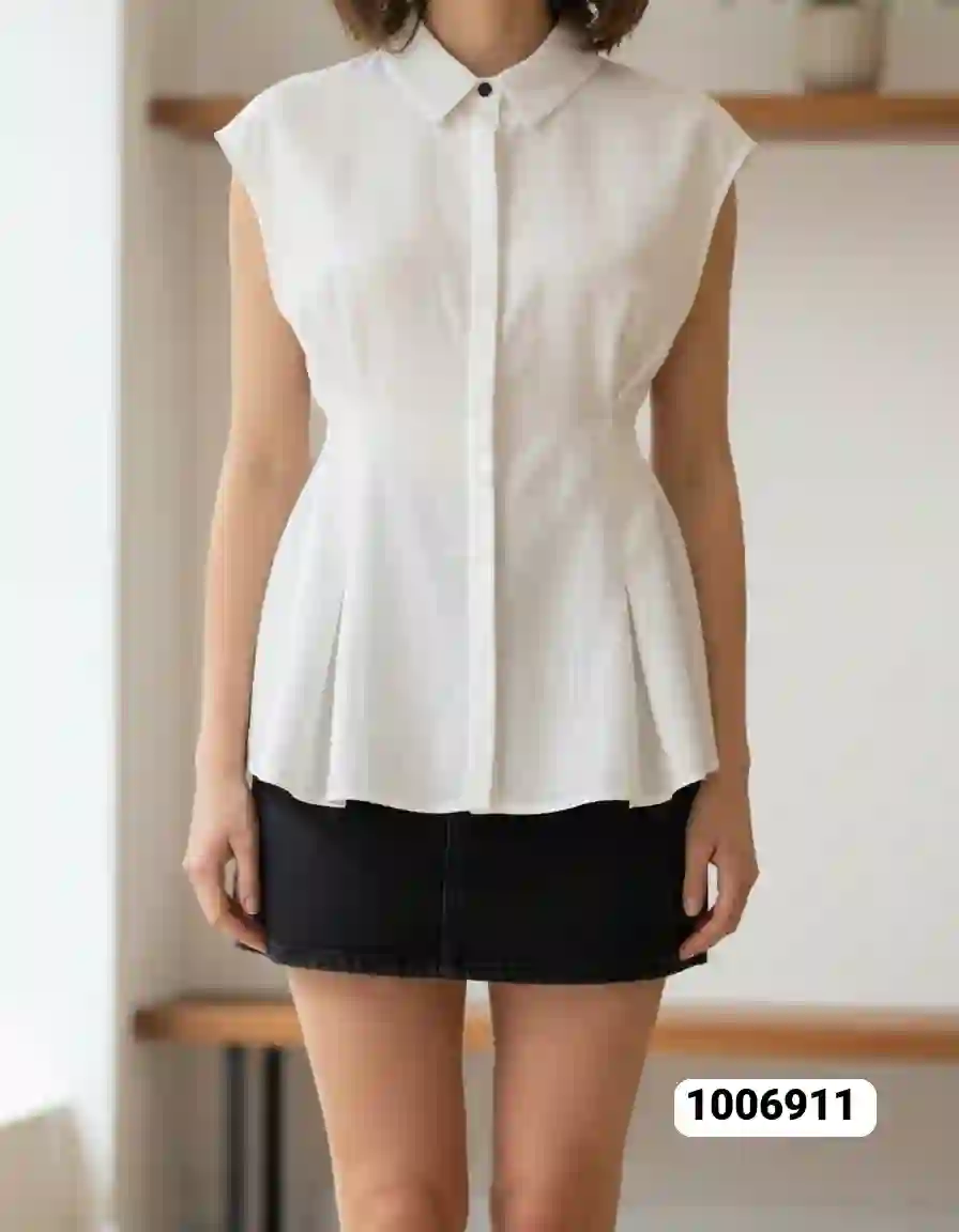 بلوزة نسائي ابيض كتافي زرائر مخفي